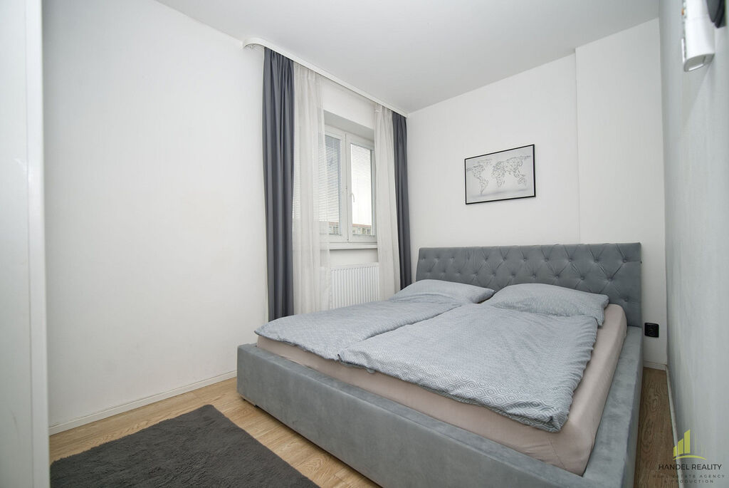 Nemovitost prošla v roce 2021 kompletní rekonstrukcí podle návrhu architekta, což se odráží na celkové funkčnosti i estetice bytu. Samotná plocha bytu (bez balkonu a sklepa) činí 42,9 m². Obývací pokoj s kuchyňským koutem je prostorný a díky dvěma oknům velmi světlý. Ložnice je sice menší, ale pohodlně se do ní vejde manželská postel i šatní skříň. Koupelna nabízí dostatek místa – kromě sprchového koutu je zde také pračka a sušička. Toaleta je samostatná. Součástí bytu je balkon o velikosti 1,9 m², který je chráněný průhlednou stříškou, a bezpečnostní vchodové dveře s trny proti vysazení.