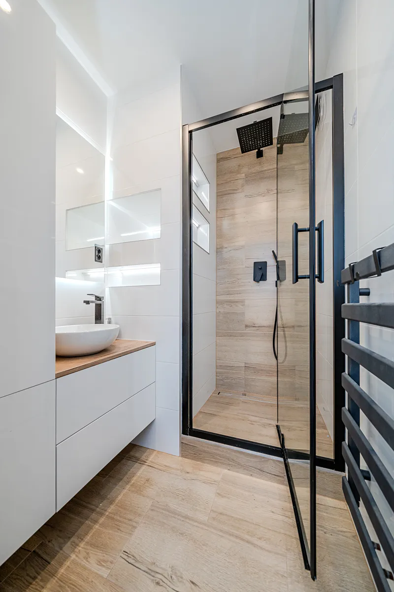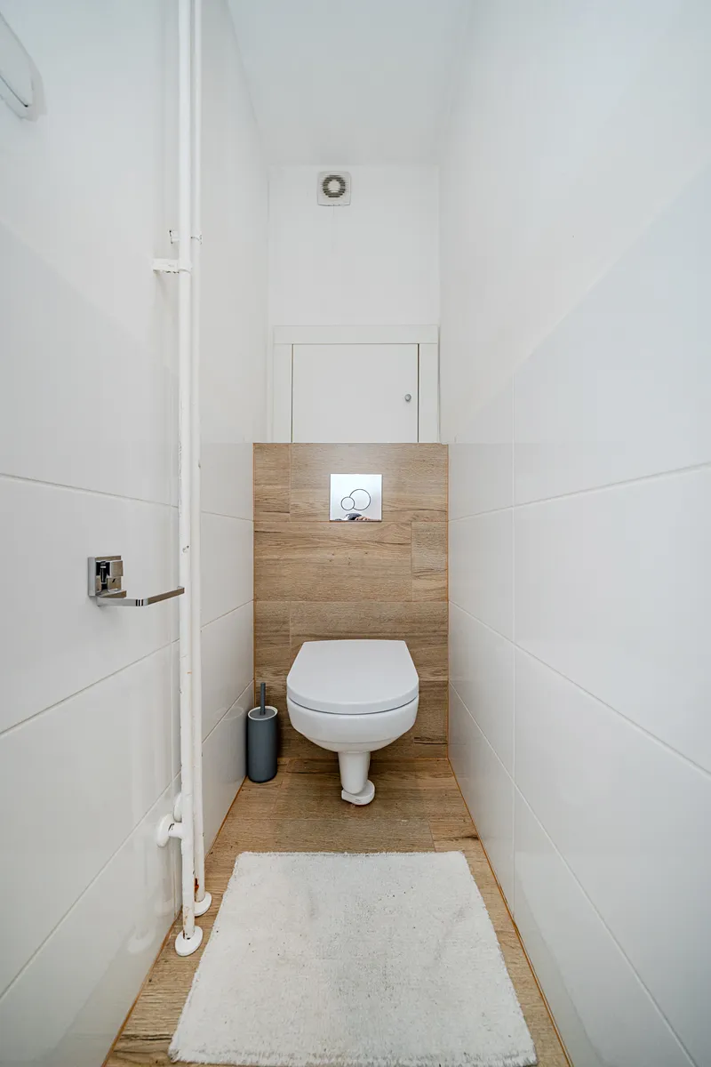 Byt prošel v letech 2017 až 2022 nákladnou rekonstrukci a byl obýván minimálně. V části bytu jsou nové rozvody elektra, podlaha je pokrytá dlažbou, plovoucí podlahou a kobercem. V chodbě a ložnici se nacházejí prostorné, vestavěné šatní skříně. Jsou zde sádrové omítky (s vyjimkou ložnice), nové dveře i zárubně.V části bytu jsou snížené stropy se zabudovaným osvětlením. Jádro je zděné. Koupelna je v moderních obkladech, s sprchovým koutem a umyvadlem. Toaleta je samostatná. Vedle toalety je zděná komora. Dominantou bytu je prostorná kuchyně s linkou na míru a vestavěnými spotřebiči (indukční varná deska, myčka, digestoř, varná trouba – vše Electrolux. Lednice je značky LG). Kuchyně je opravdu prostorná, s velkými úložnými prostory a stolem. Kuchyni od obývacího pokoje odděluje ostrůvek. Obývací pokoj je prostorný a je průchozí s ložnicí. Dětský pokoj je samostatný. V chodbě a kuchyni se nachází velkoformátová dlažba. Byt je laděný do světlých, moderních tónů. V chodbě je dostatek prostoru, který byl využit na vestavěnou šatní skříň i botník. K bytu patří prostorný, zděný sklep.