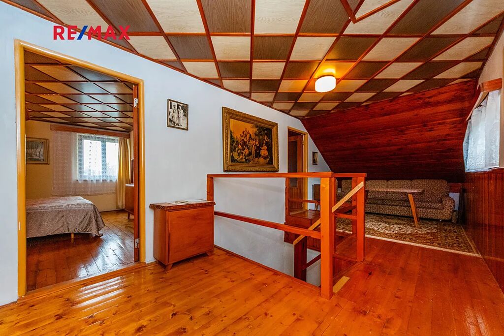 Pro každodenní potřeby je zde blízká Dobříš (pouze 3-5 km), kde najdete náměstí s kavárnami, obchody, supermarkety a další služby pro pohodlný život. O něco dál, v Příbrami (cca 10 km), čeká široká nabídka – od hotelů a spa resortů přes bazény až po kulturní atrakce jako Hornické muzeum, které přibližuje bohatou historii regionu. Tato kombinace přírody a blízkosti městských center dělá z chalupy perfektní volbu pro trvalé bydlení po drobných úpravách nebo jako rekreační útočiště.