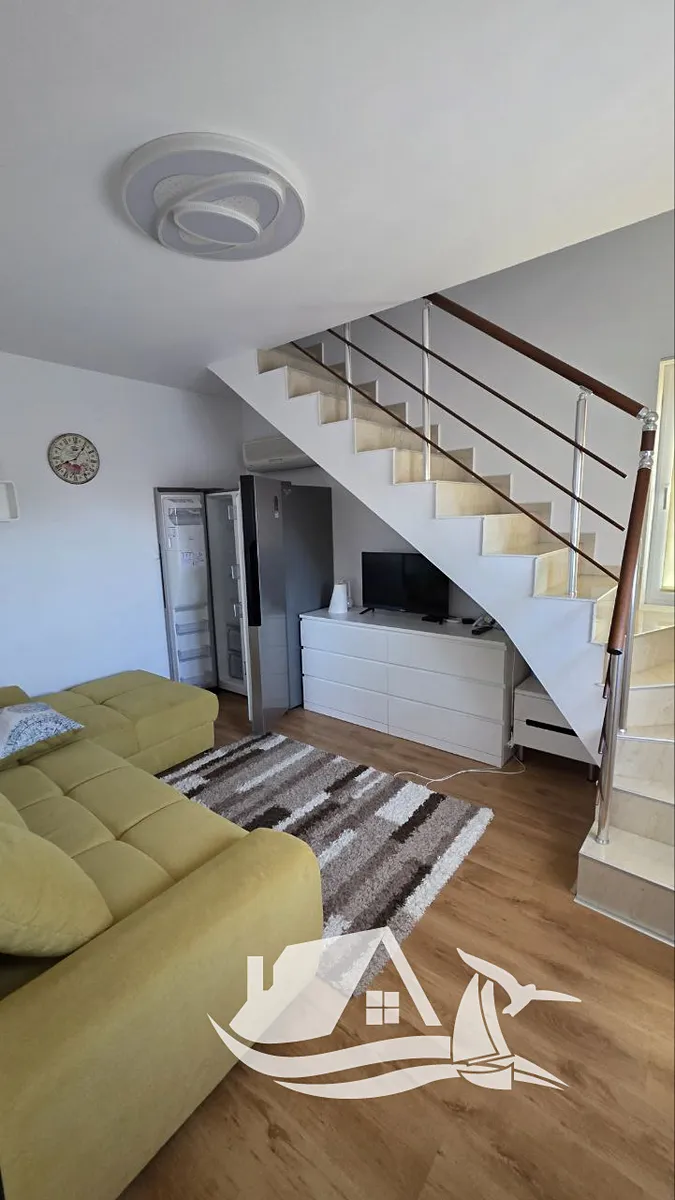 Tento mezonet je prostorný a útulný zároveň, nabízí strategickou polohu – blízko moře i centra dění, ale přitom klidné a bezpečné zázemí v areálu.