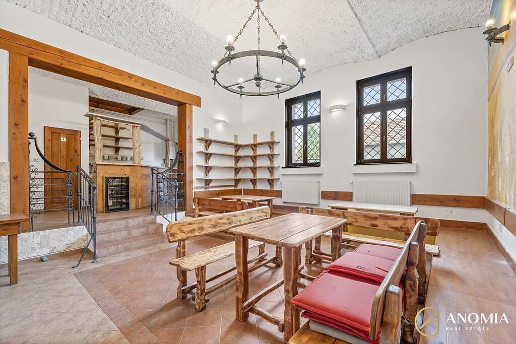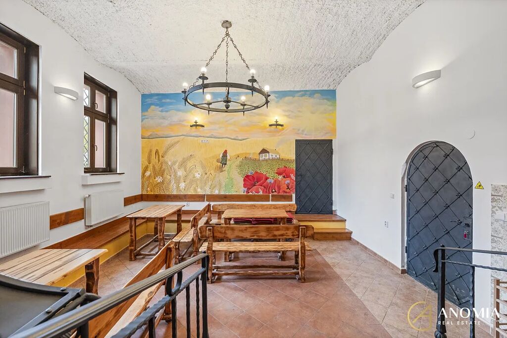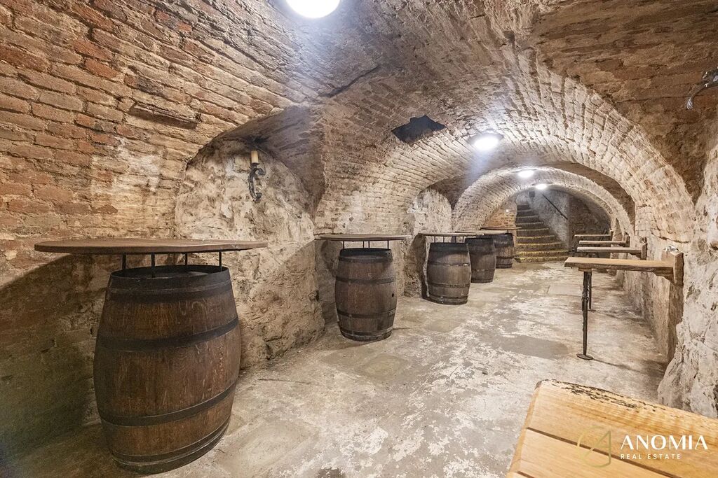 Prostor je dvoupatrový - v horním patře se nachází příjemné posezení pro hosty, v dolní části je tradiční vinný sklípek, ideální pro degustace a komorní akce. Prostor o velikosti 76m2 disponuje barem, dřevěnými lavicemi a stoly, i sociálním zařízením. Pro personál je pak k dispozici vybavená kuchyň a vlastní zázemí.