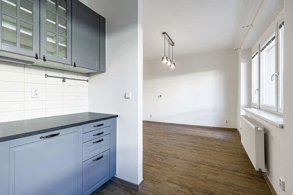 Nabízíme k pronájmu byt 1+kk 33,6 m2 v 1. nadzemním podlaží (přízemí) ve viladomě nedaleko centra města Benešova, na kterém byla v březnu 2025 dokončena rekonstrukce. Byt je téměř bezbariérový (pouze 3 schody ve vstupní chodbě v domě).