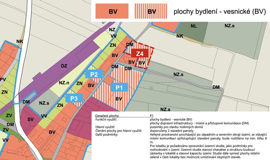 • Podmínka pro výstavbu: zpracování územní studie, která definuje strukturu zástavby, kapacitu území i plochy sídelní zeleně (kde nelze stavět)