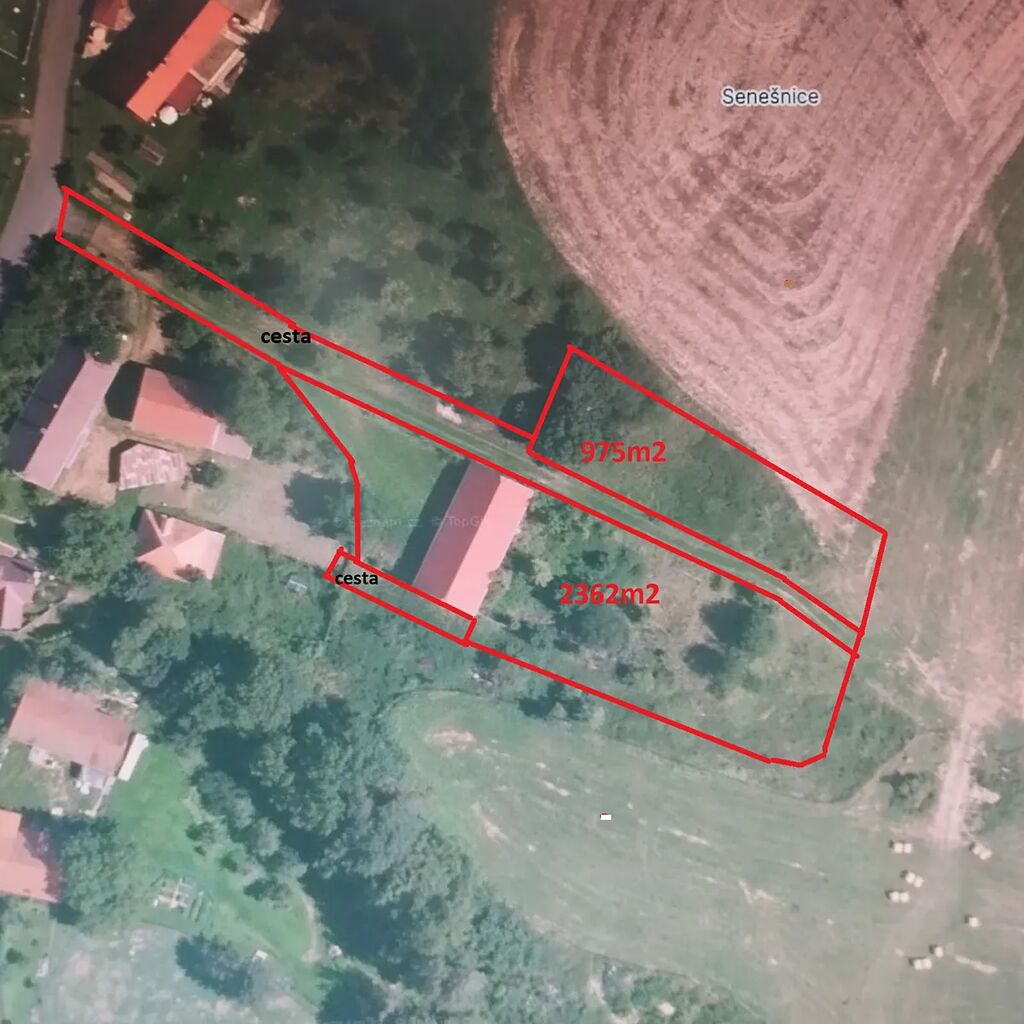 Předmětem prodeje je i podíl ve výši 1/2 ke dvěma cestám o celkové ploše 1153m2 , z jedné cesty ( 1074m2) je přístup od obecní silnice k prodávaným pozemkům a stodole