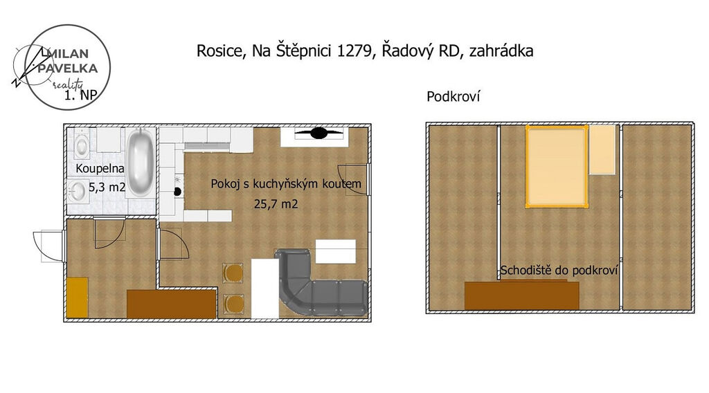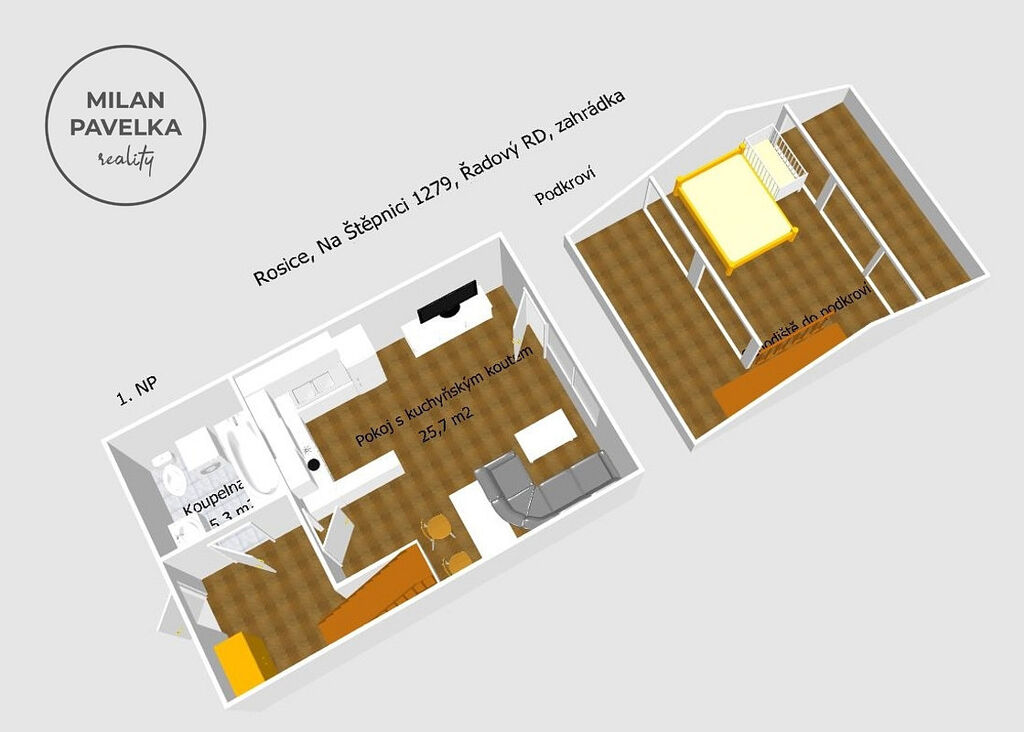 Rosice, prodej RD 1+kk + půdní prostor na spaní