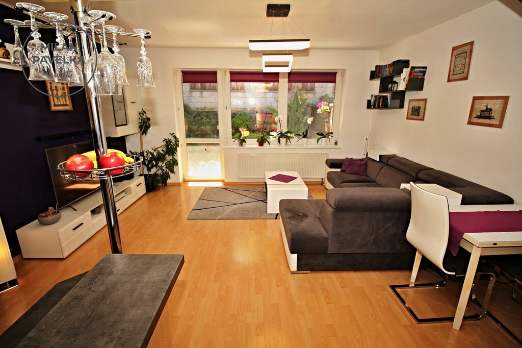 Po vstupu do zádveří, odkud je vstup do koupelny s WC o výměře 5,3 m² a schodiště do podkroví, dále před Vámi se otevře světlý a prostorný obývací pokoj s kuchyňským koutem o výměře 25,7 m² a dále vstup na terasu s posezením a se zahrádku o celkové výměře 24 m².