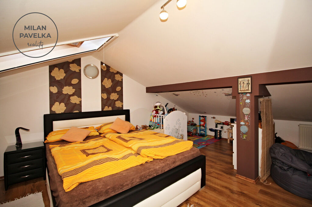Podkroví o užitné ploše 29,9 m² včetně úložného prostoru pod šikmou střechou je aktuálně klidové místo pro spaní.