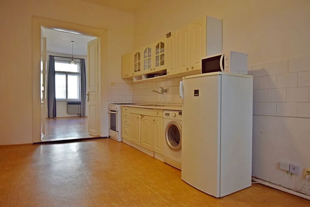 Prostorný 1+1 ve 3.patře cihlového domu bez výtahu u náměstí Jiřího z Poděbrad. Byt má průchozí kuchyni do prostorného pokoje s výhledem do Řipské ulice. Kuchyně je situována do klidného vnitrobloku se vzrostlou zelení. Z předsíně se vchází do malé koupelny se sprchovým koutem a samostatného WC. Kuchyňská linka je vybavená i pračkou. Velkou výhodou je výborná dostupnost do centra včetně blízké stanice metra Jiřího z Poděbrad. Ideální pro jednu osobu. K nastěhování ihned.
