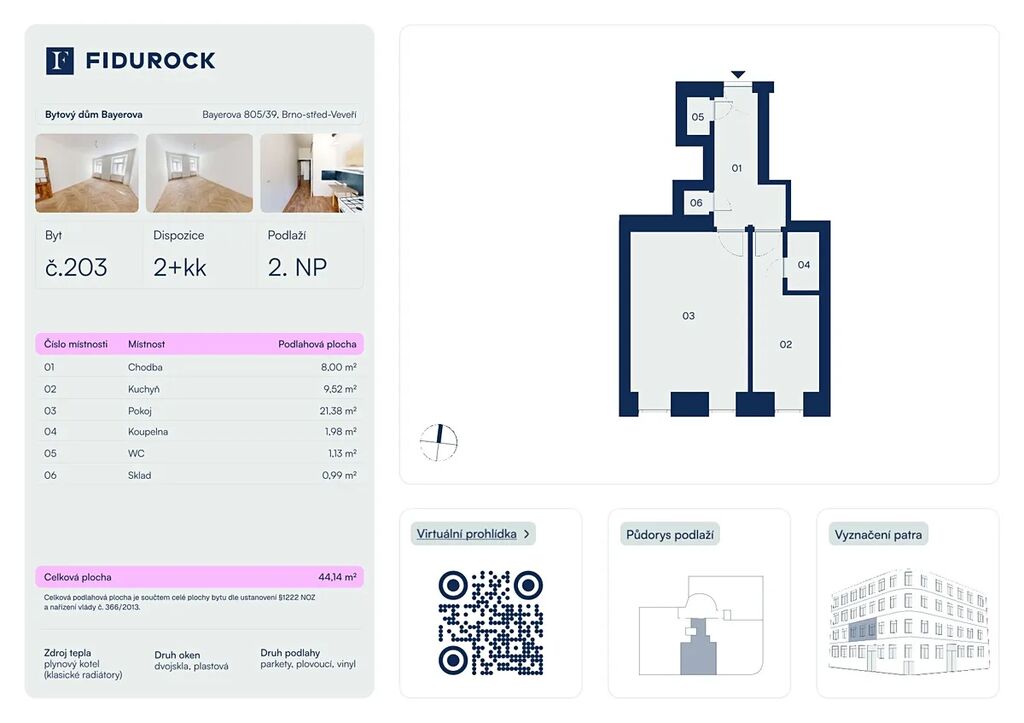 Prodej bytu 2+kk, Brno, Bayerova, 44 m2 (ID: 2690142)