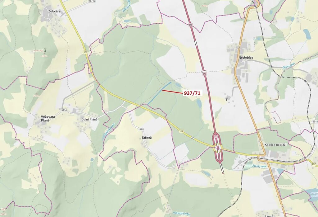 Lesní pozemek o výměře 6 768 m2, parcelní číslo 937/71, podíl 1/1, katastrální území Netřebice, obec Netřebice, obec s rozšířenou působností Kaplice, okres Český Krumlov, Jihočeský kraj. Po těžbě.