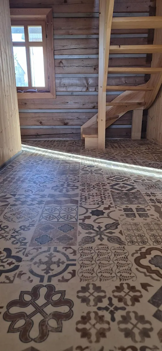 vybavená velkým jídelním stolem a lavicemi z masivu. Koupelna se sprchovým koutem a dřevěné schodiště vedoucí do parta se třemi pokoji vybavenými postelemi na míru. Vytápění je zajištěno novými krbovými kamny zn. Jotul s výkonem 9 kW, v koupelně je na stěně umístěno topné tělěso-žebřík, v patře je možné si přitopit v každém pokoji přímotopy. Ohřev vody el. bojlerem. Dotvoření interiéru dává možnost seberealizace dle vlastního vkusu.