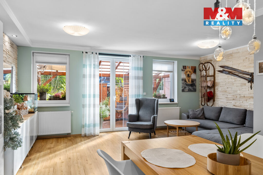 Nabízíme k prodeji rodinný řadový dům o dispozici 6+kk, situovaný v klidné části obce Lešany u Nelahozevsi. Tento cihlový třípodlažní dům je v perfektním stavu a nabízí komfortní bydlení pro rodinu s dětmi. Užitná plocha 157 m² poskytuje dostatek prostoru pro všechny členy rodiny. Nabízí 4 ložnice , prostorný obývací pokoj s koupelnou, pracovnu, kde je v tuto chvíli prostorná šatna, dvě koupelny, technickou místnost a špajz. Součástí prodeje může být i kompletní vybavení domu včetně luxusní vířivky. K domu náleží dvě parkovací stání a zahrada ve vnitrobloku orientovaná na východ, která zajišťuje příjemné proslunění. Pozemek má celkovou rozlohu 176 m². Tato nemovitost je ideální volbou pro klidné rodinné bydlení s veškerým komfortem. Neváhejte a přijďte se přesvědčit osobně!