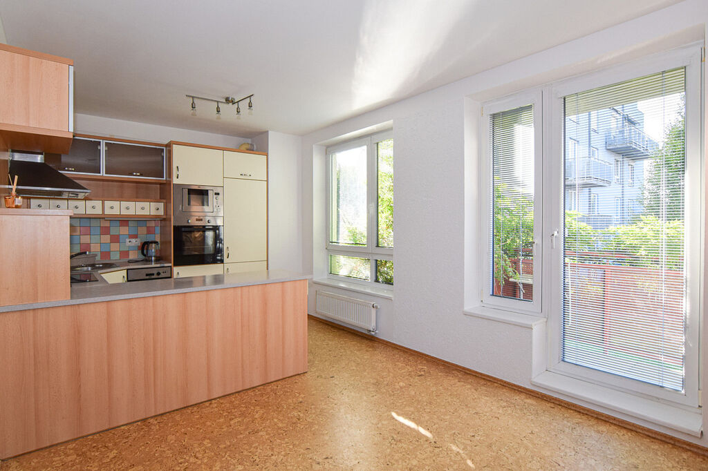 Společný prostor kuchyně a obývacího prostoru má celkovou výměru 29 m². Tato místnost je vzdušná a prosvětlená díky přímému vstupu na balkon a většímu formátu oken, které jsou v celém bytě a dodávají příjemnou atmosféru.
