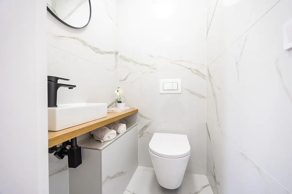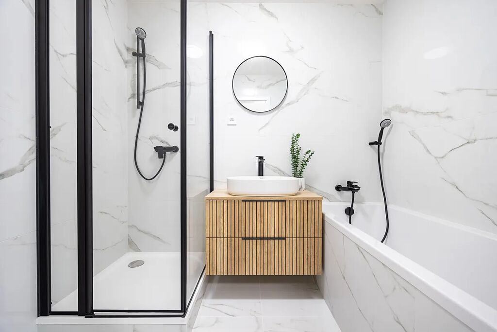 - nová sanita (vana, sprchový kout, umyvadlo, skříňka, toaleta)