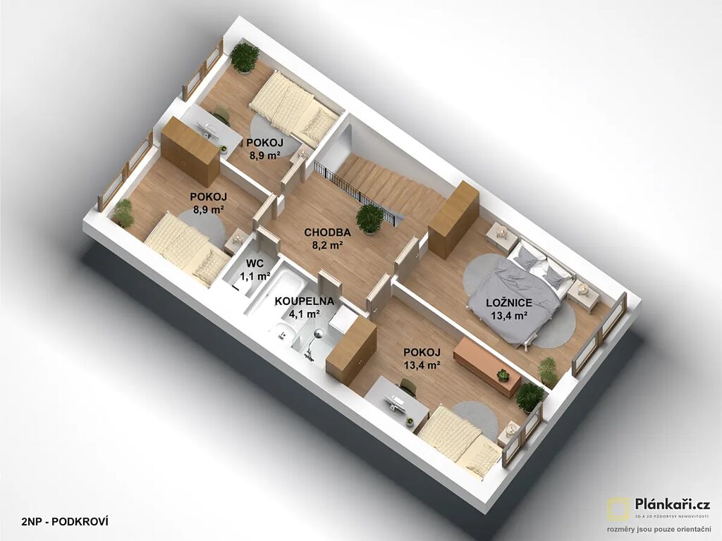 - Prostorný obývací pokoj o ploše více než 56 m²