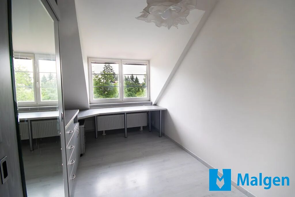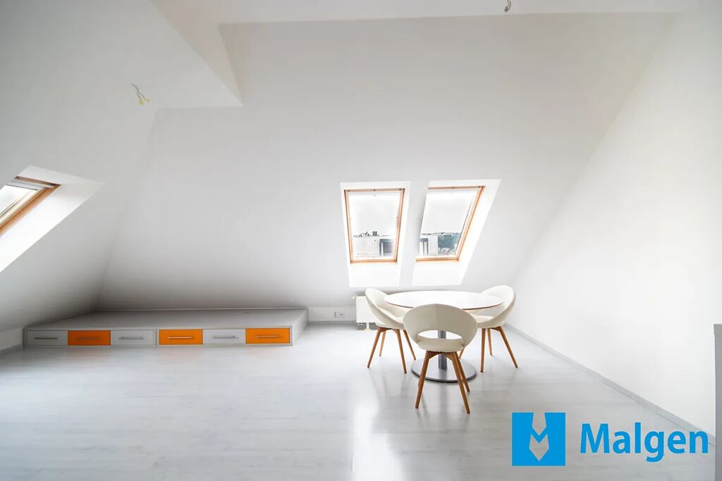 Exkluzivně nabízíme prostorný a světlý podkrovní byt o dispozici 3+kk s rozlohou 86,1 m2, situovaný ve 4. nadzemním podlaží v klidné lokalitě Malvazinky, Praha 5. Tento byt disponuje dvěma ložnicemi, obývacím pokojem s kuchyňským koutem, šatnou a jednou koupelnou s toaletou. Byt je částečně zařízen, zahrnuje skříně, postel a jídelní stůl. Součástí vybavení bytu je klimatizace a vlastní elektrický kotel.