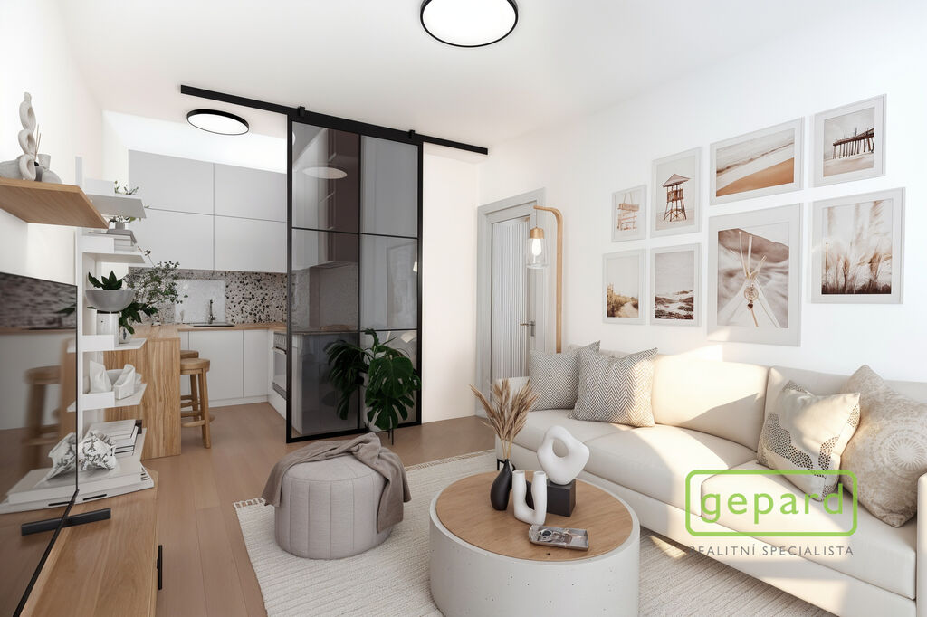 Dispozici tvoří obývací pokoj s kuchyňským koutem, ložnice a koupelna s WC. Velkou výhodou jsou okna orientovaná na jih do klidného vnitrobloku, která zajišťují dostatek světla po celý den a příjemnou atmosféru.