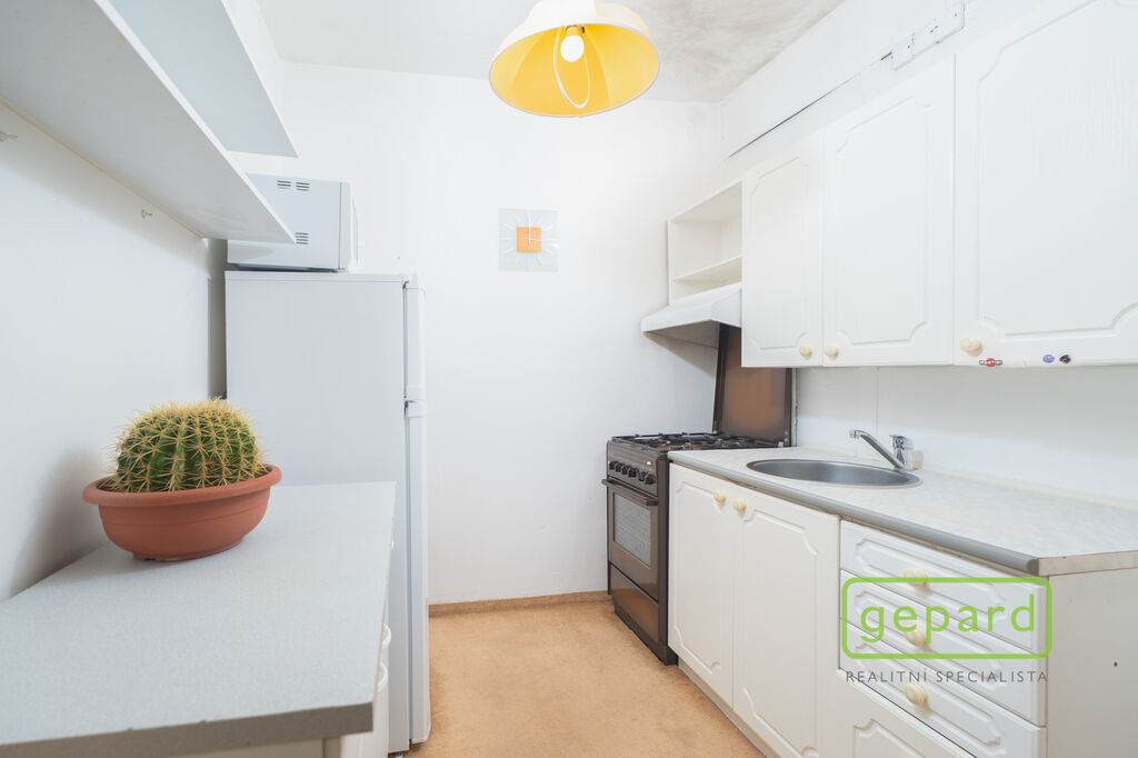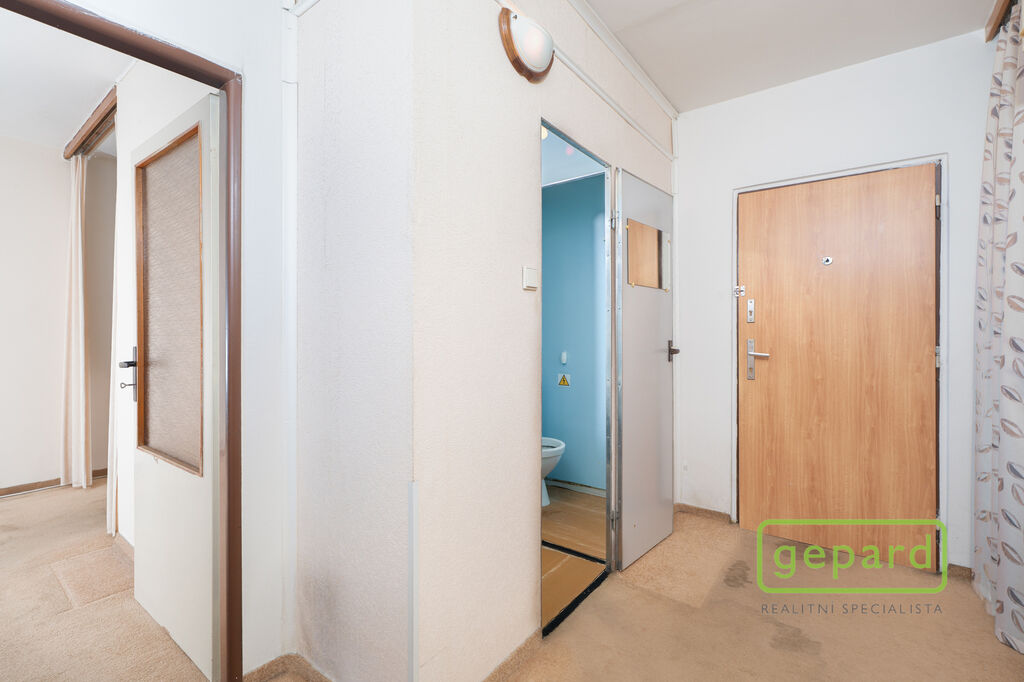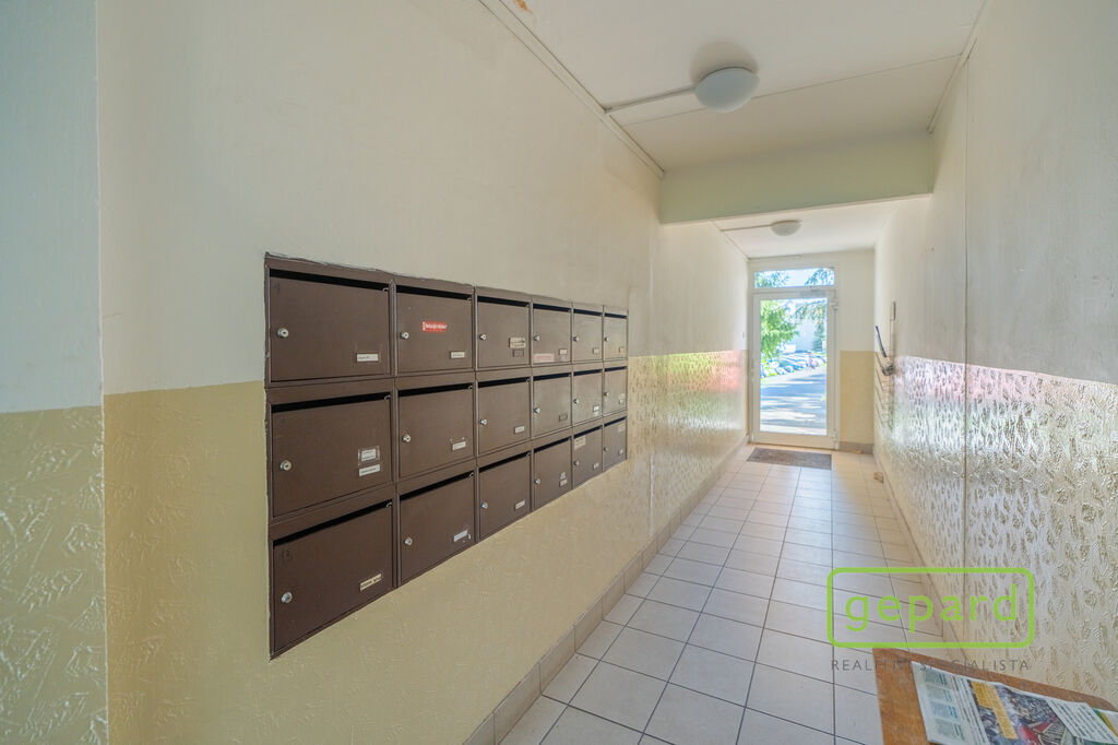 Byt o podlahové ploše 38,3 m² + balkon 5,8 m² se nachází ve 3. patře udržovaného a zatepleného panelového domu s výtahem. K bytu náleží také praktická komora hned vedle bytu (1 m²) a sklep v suterénu (1,2 m²), ideální na uložení sezónních věcí.