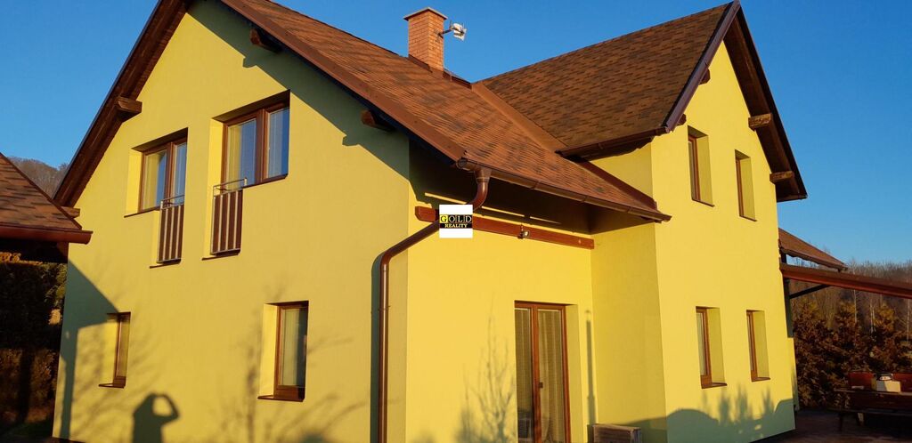 Exkluzivní prodej krásného, světlého, prostorného, rodinného, domu 5+kk s terasou, v obci Cidlina. Novostavba, kolaudace 2019. V přízemí: obývací pokoj, kuchyň s jídelnou, ložnice, koupelna, chodba, komora a wc. V patře jsou tři ložnice a koupelna s wc. Kuchyňská linka s elektrickou varnou deskou, elektrickou troubou, lednicí s mrazničkou, myčkou a pracovní deskou z masivu. Koupelna v přízemí s vířivou vanou. Koupelna v patře se sprchovým koutem. Kvalitní okna na východ, jih a západ, bezpečnostní čtyřskla s konexem. Vstupní dveře také bezpečnostní. Interiérové dveře, z masivu, od truhláře. Na podlahách pvc, dlažby, koberce. Obývací pokoj s kuchyní (49 m2). Vytápění ústřední, elektrickým kotlem + krbová vložka v obývacím pokoji. Ohřev vody boilerem. Terasa (100 m2), s krytým bazénem (18 m2) s ohřevem vody solárním panelem. Zateplená fasáda domu polystyrénem. Garáž + přístřešek na parkování. Vrata u plotu elektrická s dálkovým ovládáním. Dvě stání na přívěsný vozík, pod podlahou terasy, popřípadě úložný prostor. Přístřešek na dřevo, na nářadí a na filtraci bazénu. Septik s biofiltrem. Kopaná studna 13 metrů, s dostatkem vody, nyní obec buduje vodovod. Na zahradě vzrostlé, ovocné stromy a tůje kolem plotu, jež zajištují soukromí na terase i na zahradě. Škola, pošta, potraviny, restaurace v obci Železnice (4 km). Školka v obci Kněžnice (3 km). Autobus do Lomnice nad Popelkou, do Železnice a do Jičína. Možno financovat hypotečním úvěrem !