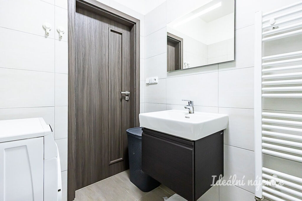 Byt se pronajímá plně vybavený. Kuchyňský kout je zařízen lednicí, elektrickou troubou, varnou deskou, mikrovlnnou troubou a digestoří. V obývací části je pohovka, konferenční stolek a barový stůl se židlemi. Ložnice nabízí postel a šatní skříň. V koupelně se nachází sprchový kout, umyvadlo, zrcadlo, pračka a toaleta. V předsíni je vestavěná skříň, botník a zrcadlo. Byt je klimatizovaný.