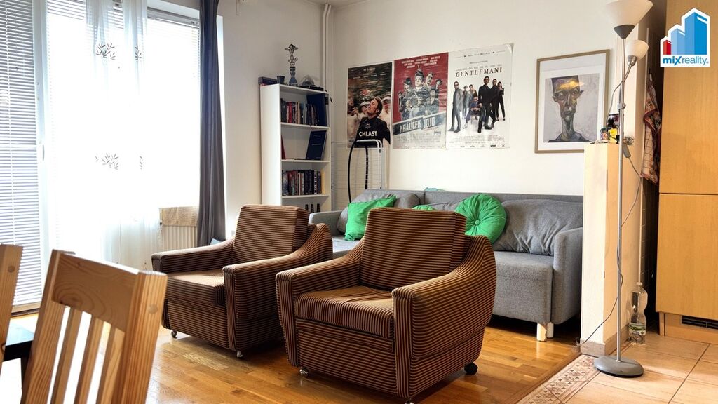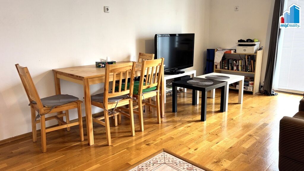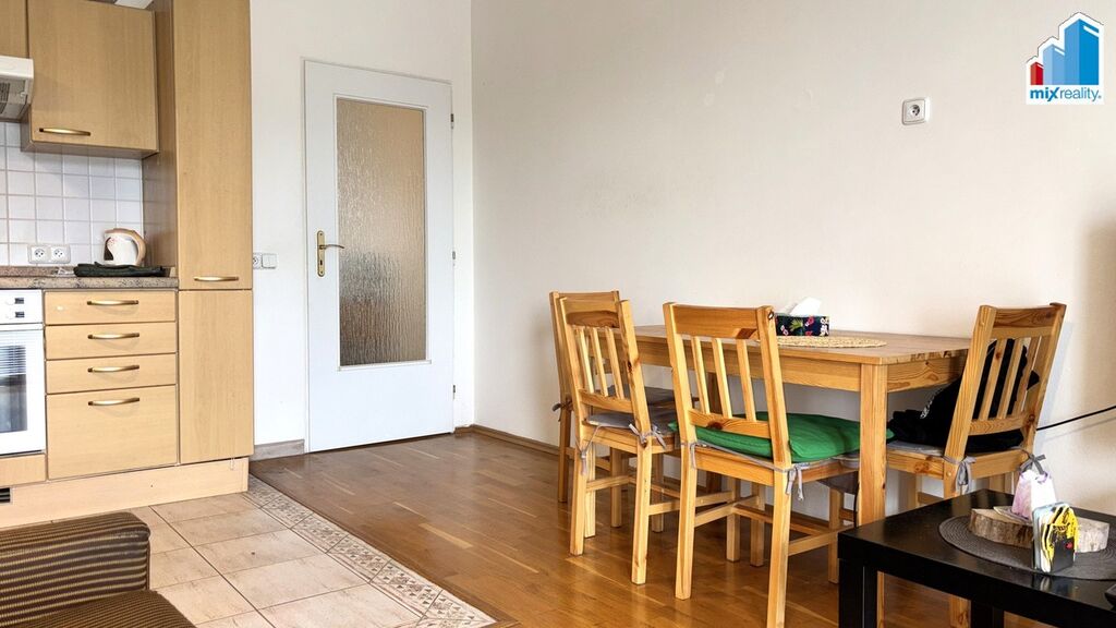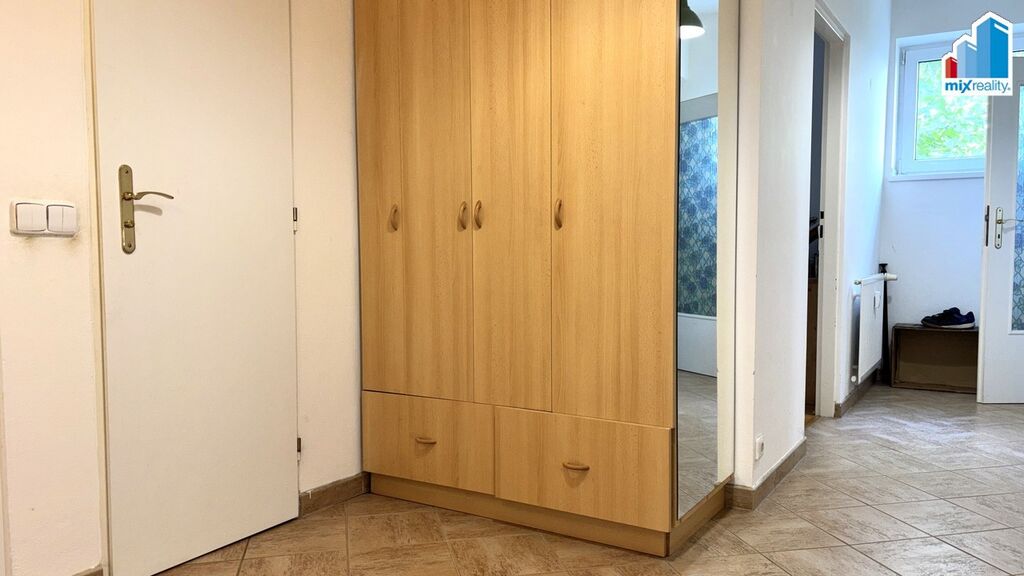 Dispozice bytu: předsíň, chodba, koupelna s vanou, samostatné WC, ložnice a prostorný obývací pokoj s kuchyňským koutem a vstupem na balkon. K bytu náleží také sklepní kóje a vlastní parkovací stání. K bytu je možné si dokoupit garáž o velikosti 27 m² s elektřinou v ceně 600 000 Kč.