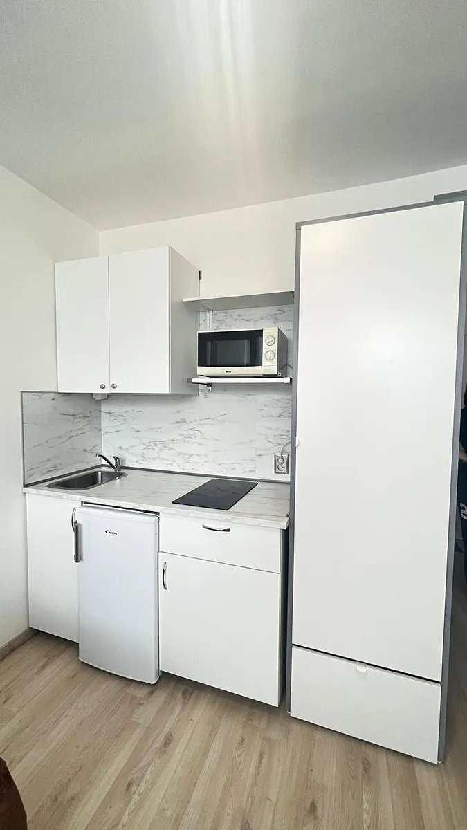 Jednotka vybavená. Kuchyňský kout je vybaven indukční plotýnkou, mikrovlnkou a lednicí. Ve vstupní chodbě se nachází vešak a botnik.
