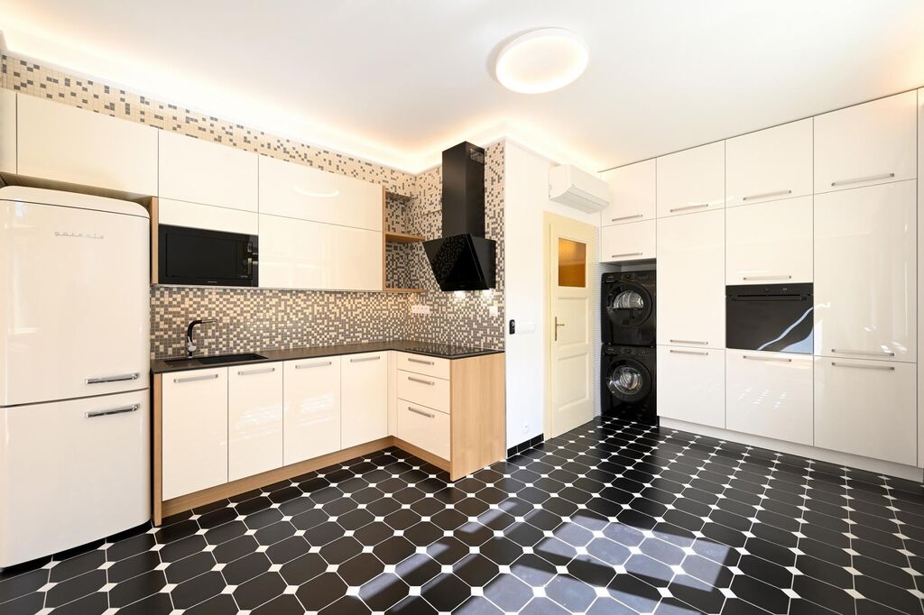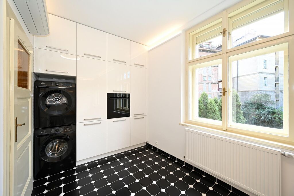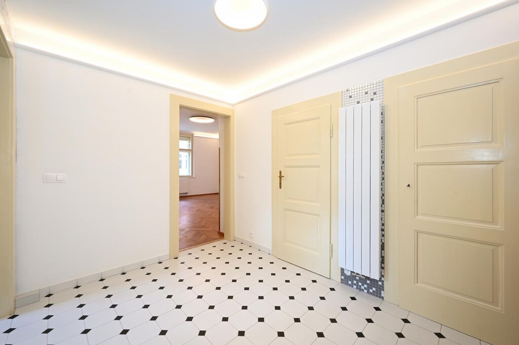 Bydlení s nádechem romantiky první republiky v historickém kontextu lokality. Velmi zdařilá rekonstrukce bytových jednotek činžovního domu, citlivá kombinace renovovaných původních prvků s moderním vybavením kuchyně a koupelny. Krásné dřevěné podlahy nebo dlažby, kvalitní kuchyňská linka se spotřebiči Gorenje. Okna vybavena elektrickými roletami. Variabilní osvětlení každé místnosti. K dispozici hezký čistý sklep.