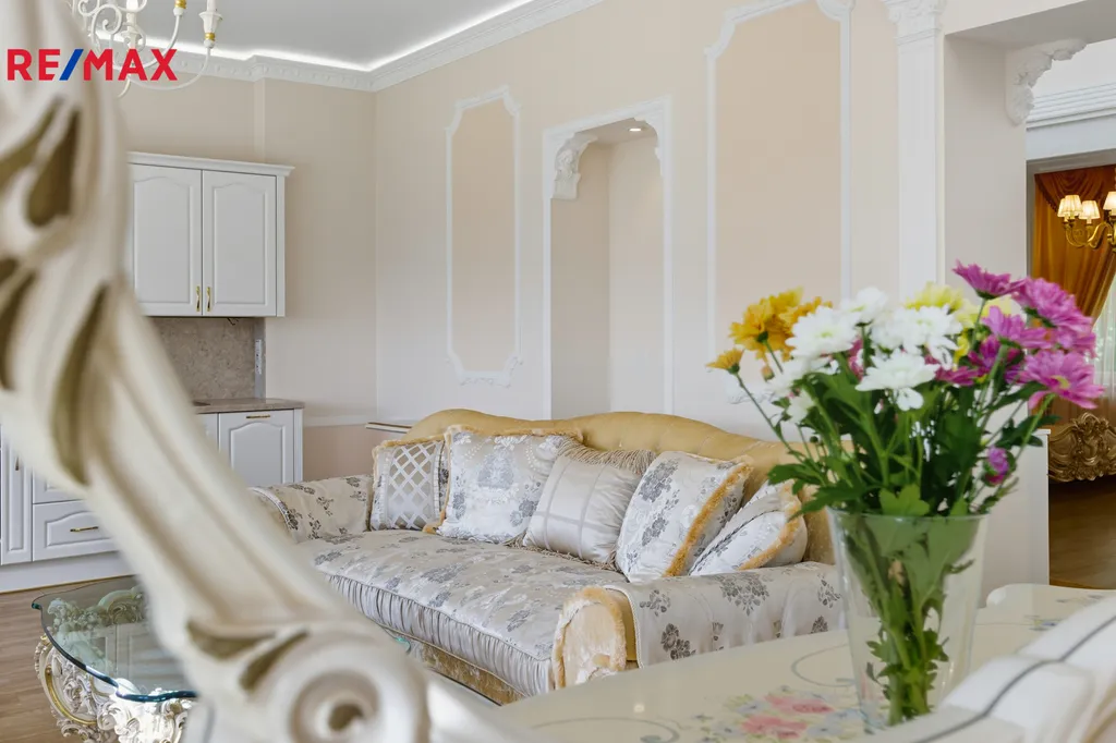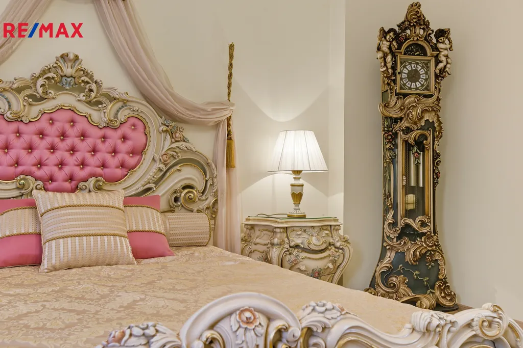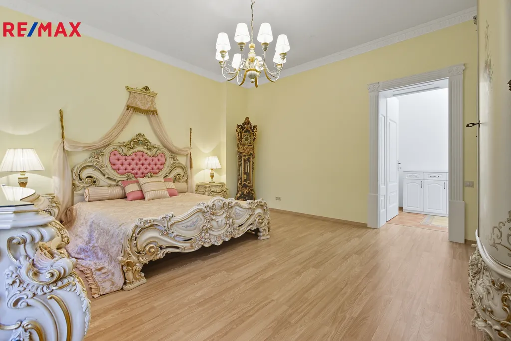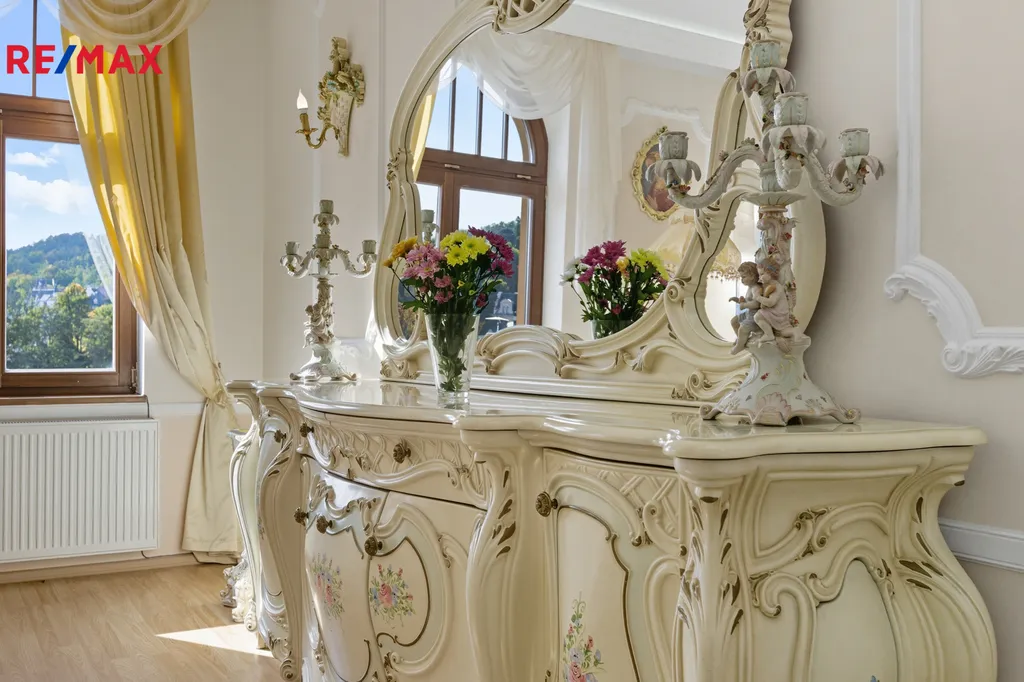 Chcete žít jako na zámku? Tento byt je ideální volbou. Nabízíme k prodeji výjimečný byt, zařízený ve stylu připomínajícím zlatou éru evropských zámků. Tento interiér spojuje bohatě zdobený nábytek, křišťálové lustry a elegantní detaily do jedinečného celku. Nachází se v lázeňské zóně Karlových Varů, na prestižní Ondřejské ulici, v bezprostřední blízkosti Vřídelní kolonády a romantických lázeňských parků.