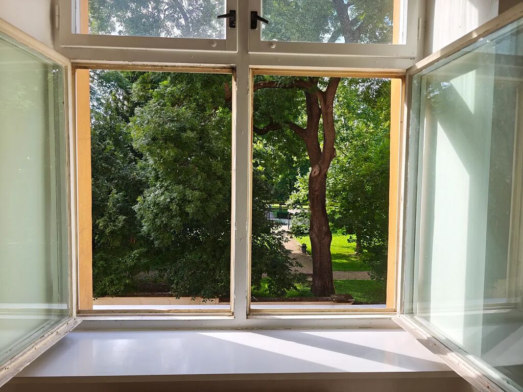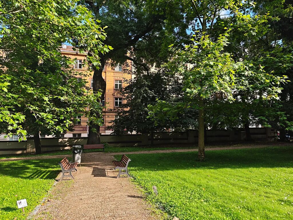 Oba pokoje jsou neprůchozí, což zajišťuje dostatek soukromí. Okna jsou orientována do klidného vnitrobloku a s výhledem do parku přes ulici – ideální pro ty, kteří ocení zeleň a klid i v centru města.