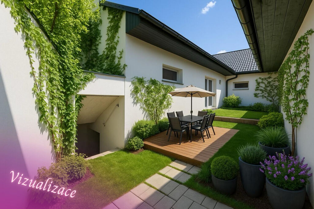 Dvůr nabízí příjemné soukromí i místo k odpočinku o ploše cca 60 m².