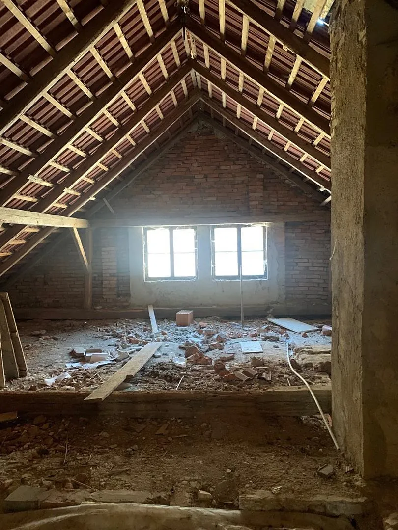 Druhá stavba blíž u řeky je podsklepená a má dvě nadzemní podlaží a podkroví pod sedlovou střechou. Má vybourané příčky a podlahy a je připravena na rekonstrukci dle záměrů nového majitele. Jedná se o ideální prostor pro penzion anebo velkou rodinu.