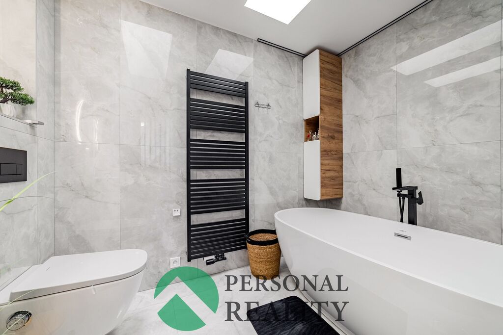 - Patro nabízí ložnici se šatnou a zelenou terasou, dva dětské pokoje, další šatnu a koupelnu s vanou a WC.