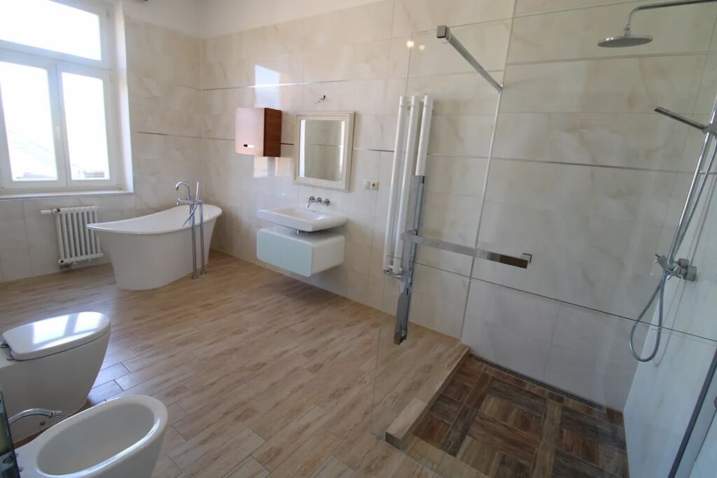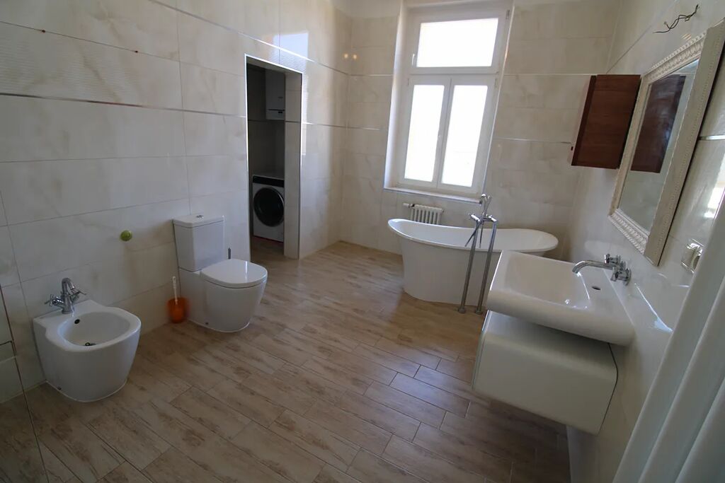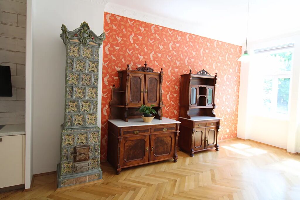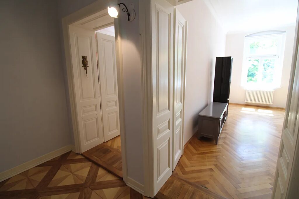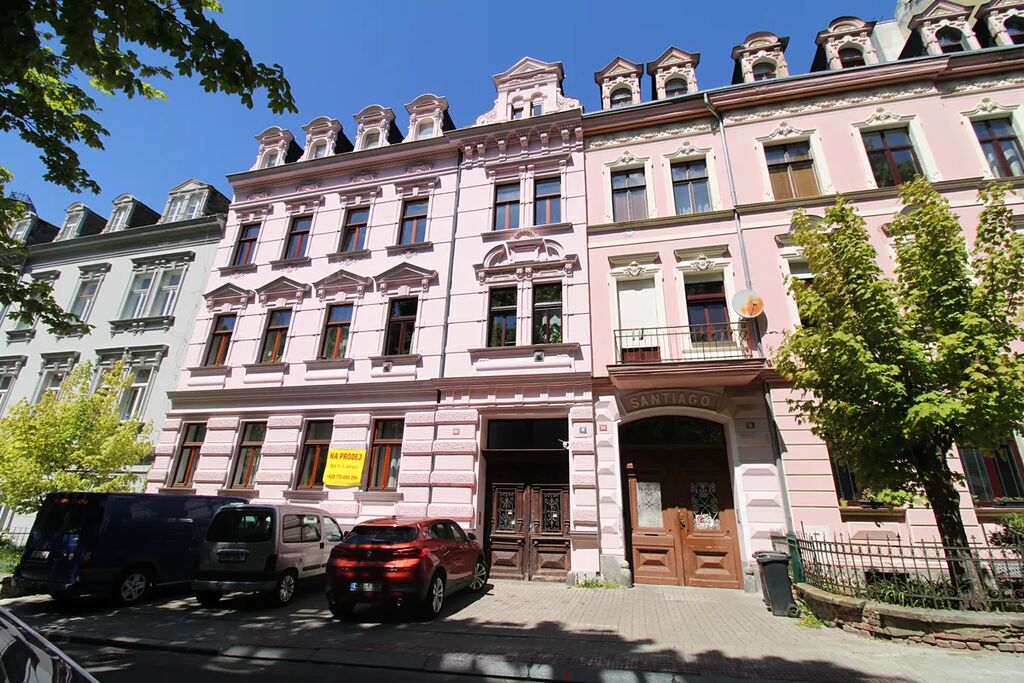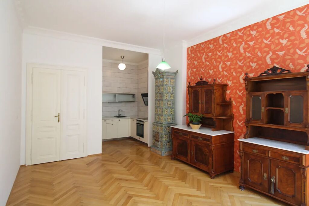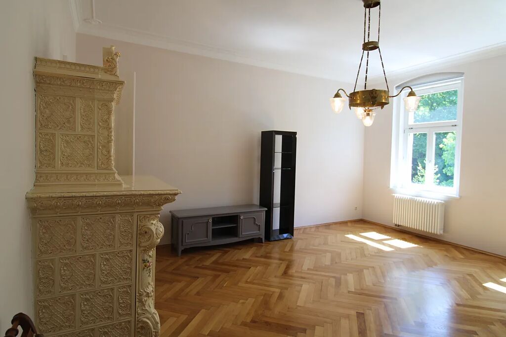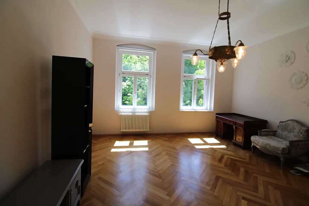 Nabízíme k prodeji byt 2+KK v osobním vlastnictví, nacházející v 2 patře (3 nadzemní podlaží) dobře udržované historické budovy v centru Karlových Varů. Celková plocha bytu 94 m2, užitná plocha 77 m2, součástí bytu je sklep o ploše 17 m2. Topení a ohřev vody v bytě zajištuje plynový kotel, výška stropu 3,6 m2, podlahy – parkety. Světlý a prostorný byt je ve velmi dobrem stavu, každý pokoj vybaven funkčním historickým krbem. Náklady na bydlení 2555,- Kč měsíčně, včetně fondu oprav.