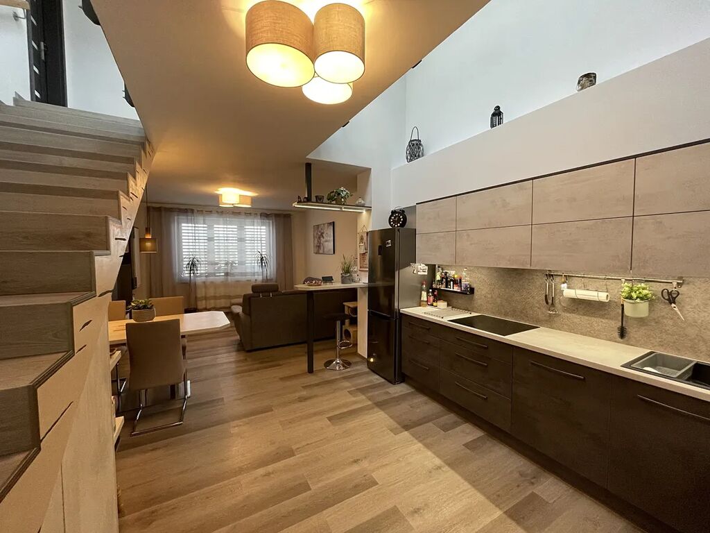 Prodej novějšího řadového rodinného domu 6+kk s dvojgaráží, zahradou a velkou dílnou, který je situován v obci Blučina, 20 km od Brna. Jedná se o velice prostorný, mimořádně energeticky úsporný dům s moderními prvky. Tato nemovitost Vás jistě překvapí svou vzdušnou, ale i praktickou dispozicí. Dům je postaven z velmi kvalitních materiálů a je vybaven tepelným čerpadlem a solárními panely s baterií.