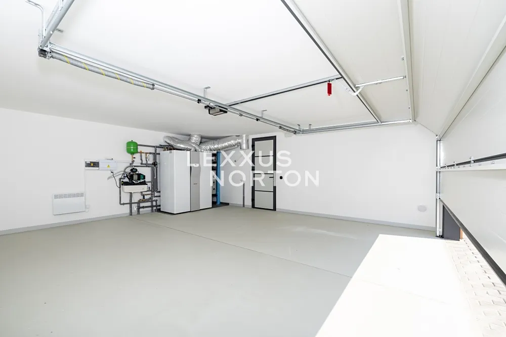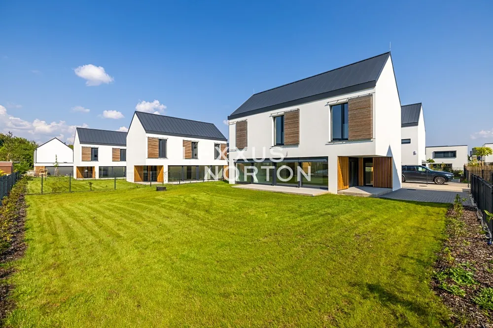 V domě je použita kvalitní sanita značky LAUFEN, která vyniká moderním designem a dlouhou životností. Vanové baterie a sprchový set HANSGROHE dodávají koupelnám prémiový vzhled a maximální komfort. Pro zvýšení energetické úspornosti jsou instalována okna s izolačními trojskly, která zajišťují vynikající tepelnou a zvukovou izolaci. Vinylové podlahy s akustickou podložkou dále přispívají ke klidnému a pohodlnému bydlení.