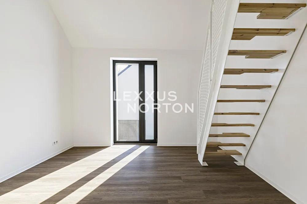 V domě je použita kvalitní sanita značky LAUFEN, která vyniká moderním designem a dlouhou životností. Vanové baterie a sprchový set HANSGROHE dodávají koupelnám prémiový vzhled a maximální komfort. Pro zvýšení energetické úspornosti jsou instalována okna s izolačními trojskly, která zajišťují vynikající tepelnou a zvukovou izolaci. Vinylové podlahy s akustickou podložkou dále přispívají ke klidnému a pohodlnému bydlení.