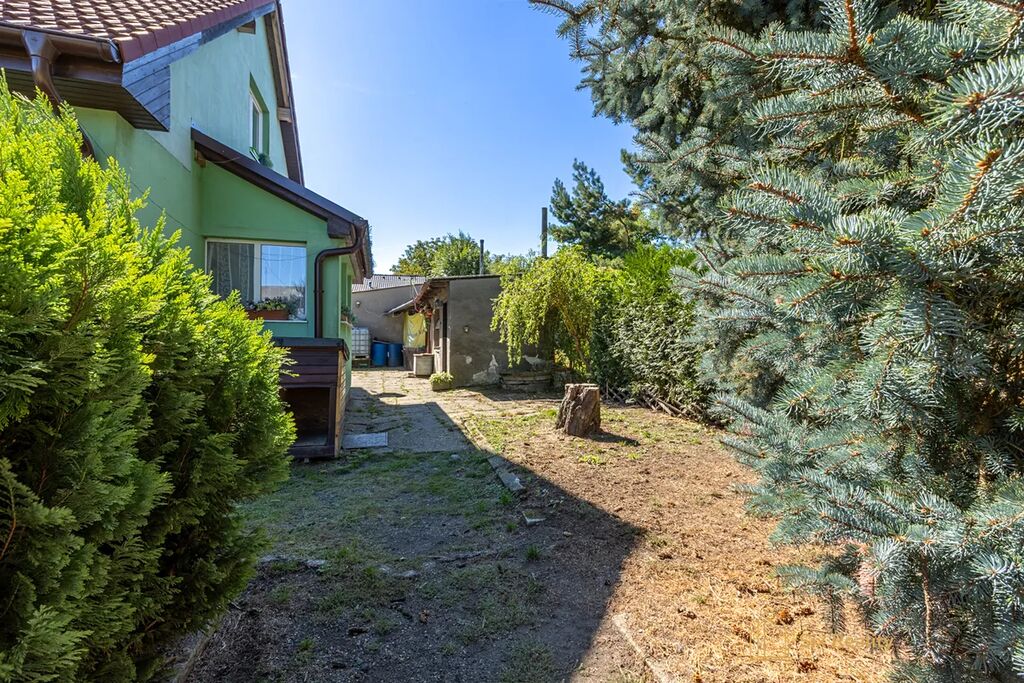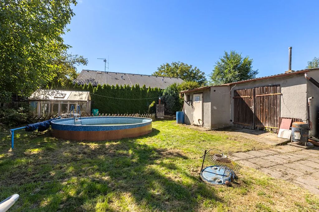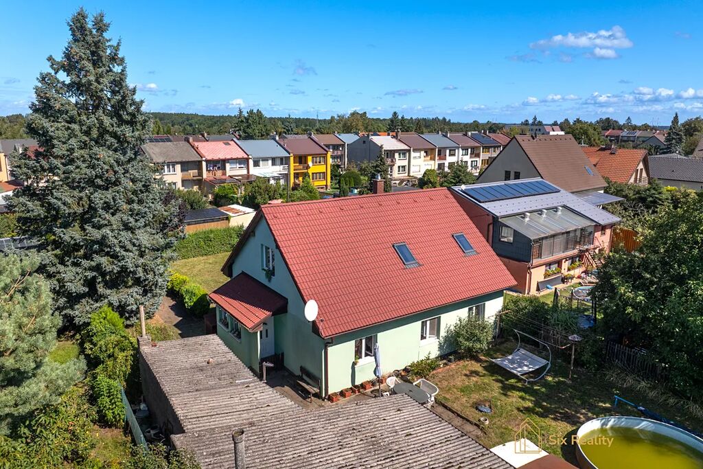 Nabízíme vám rodinný dům s dispozicí 5+1 dvěma koupelnami a dvěma toaletami s celkovou užitnou plochou 166 m2 po částečné rekonstrukci. Dům je dvoupodlažní a na pozemku o velikosti 838 m2 nechybí bazén a garáž pro jeden automobil. Nová střecha, plastová okna a zateplení s fasádou je již hotové – nic z toho už nemusíte řešit.