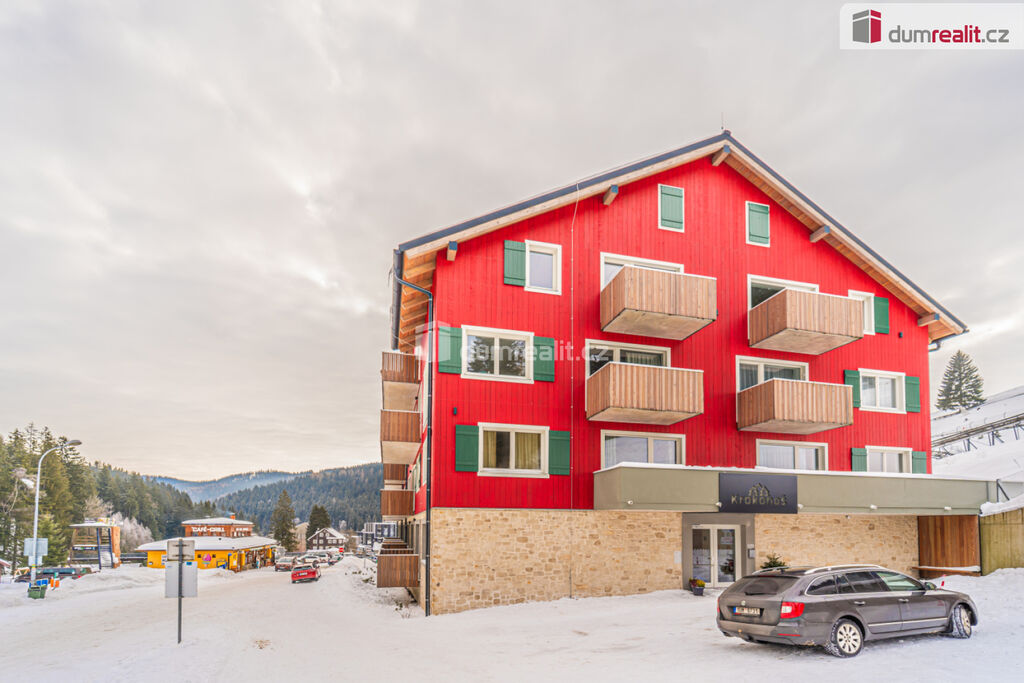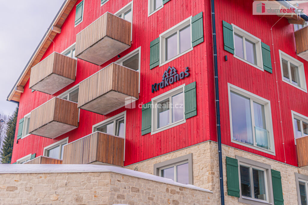 možný prodej apartmánu v Peci pod Sněžkou v nově postavené budově. Hledáte-li druhý domov nebo investiční příležitost v lokalitě, kde ceny za poslední roky rostou, pak je tento apartmán nejlepší volbou. Při vstupu do apartmánu na vás na první pohled dýchne horská atmosféra dokreslená dřevěnými prvky. Na druhý pohled si všimnete, jak je apartmán kvalitně udělaný. Je kompletně vybavený vkusným nábytkem, není tedy třeba nic kupovat a zařizovat. Po zimní procházce jistě oceníte podlahové vytápění zabudované pod dřevěnou podlahu. S nádobím si taky nemusíte dělat starosti, umyje ho za vás myčka. Při ranní kávě si vychutnáte pohled na jezero či okolí z vašeho balkonu. Když začne sněžit, můžete to pozorovat z poza francouzských oken. A pokud se budete chtít vydat autem po okolí, nečeká vás žádné škrabání mrazu či shrabávání sněhu, součástí je totiž garážové stání. Sjedete výtahem rovnou do garáží, kde nasednete a vyrazíte. Při návratu ze sjezdovky oceníte sklepní kóji, kam odložíte lyže či další věci. Když se vám nebude chtít vařit, zajdete do restaurace naproti nebo vedle. V létě či na jaře se zde také nudit nebudete. Můžete si vyšlápnout Sněžku nebo se jet projet na kole po jedné z cyklistických tras. V případě pronájmu můžete využít plný servis, kdy je zajištěn jak přísun klientely, tak úklid apod. Byt má podlahovou plochu dle prohlášení vlastníka 48 m² plus balkon. Poplatky včetně fondu oprav jsou 6581 Kč. Byt je ve 4.podlaží a je jižně orientovaný. Ev. číslo: 652645.
