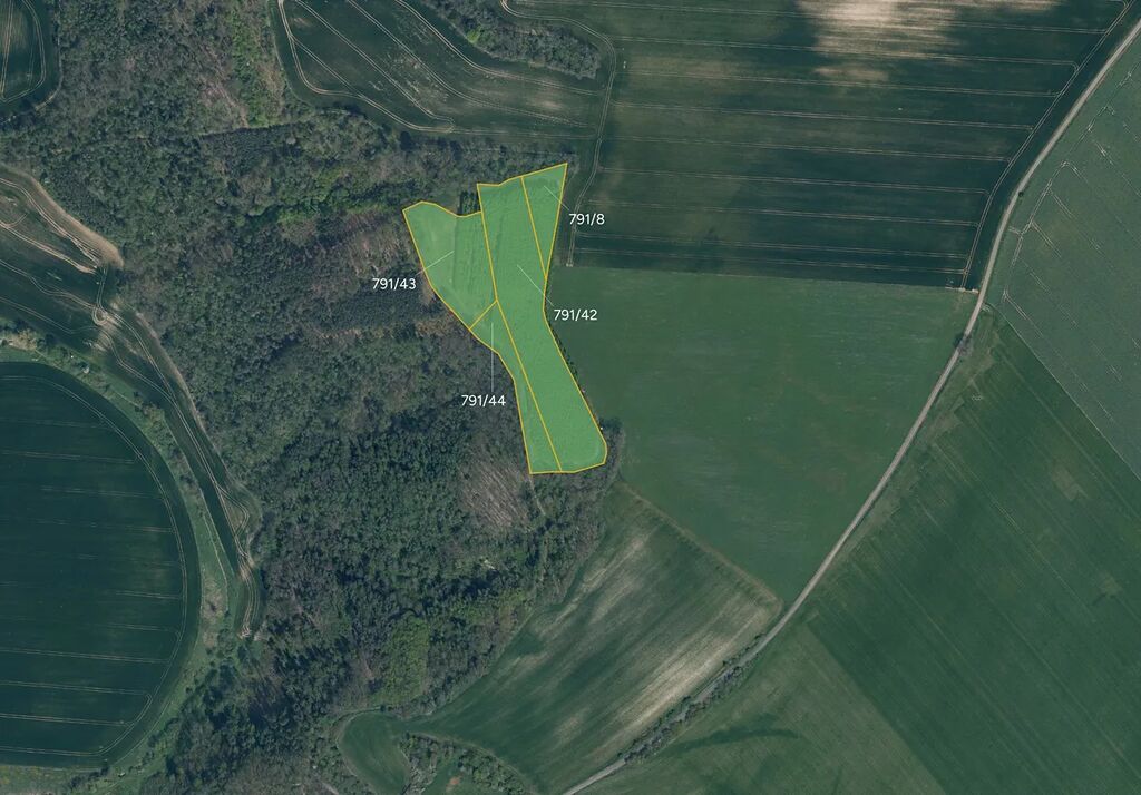 Jedná se o parcely č. 791/8, 791/42, 791/43 a 791/44. Celková výměra těchto pozemků činí 22 290 m² a celá tato plocha je předmětem prodeje. Všechny parcely jsou vedeny jako orná půda.