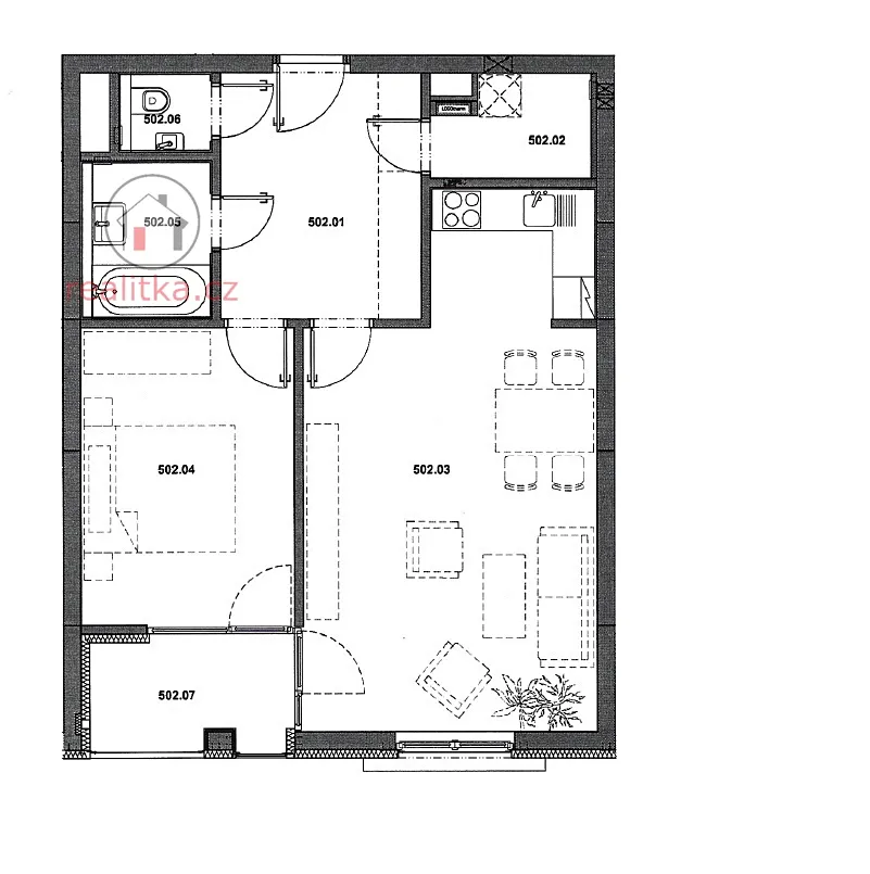 • Dispozice: Chodba, WC, koupelna, vnitřní komora, ložnice, kuchyň s jídelnou a obývacím pokojem.
