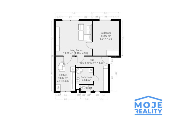 - Elektřina a plyn budou převedeny na nájemce (doporučené měsíční zálohy: plyn cca 300 Kč, elektřina cca 1 500 Kč)