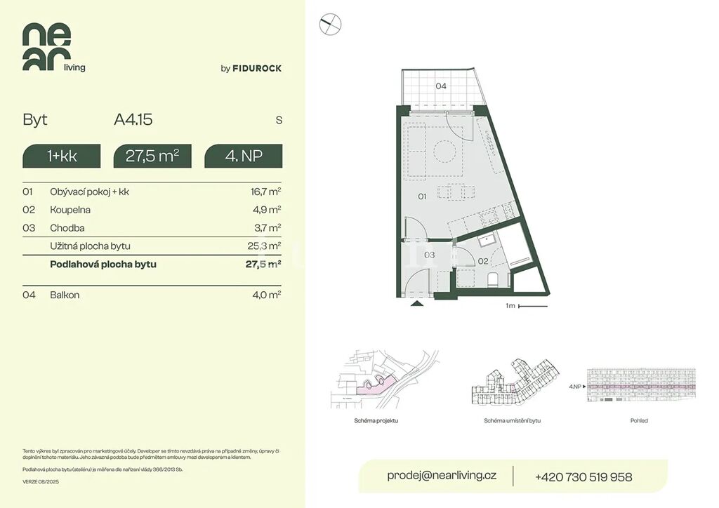 Nabízíme k prodeji byt 1+kk o podlahové ploše 27,5 m² s balkonem 4 m² v developerském projektu NEAR living v Praze 8, vznikajícím na pomezí Palmovky a Karlína.