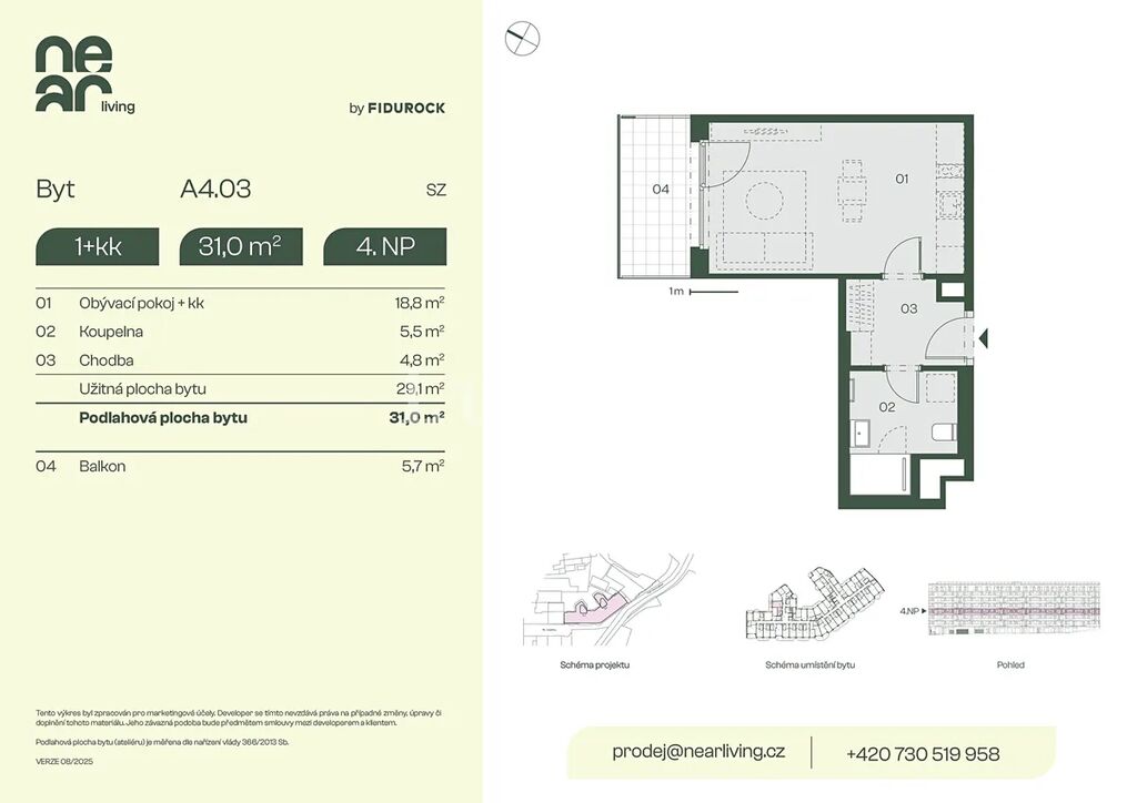 Nabízíme k prodeji byt 1+kk o podlahové ploše 31 m² s balkonem 5,7 m² v developerském projektu NEAR living v Praze 8, vznikajícím na pomezí Palmovky a Karlína.