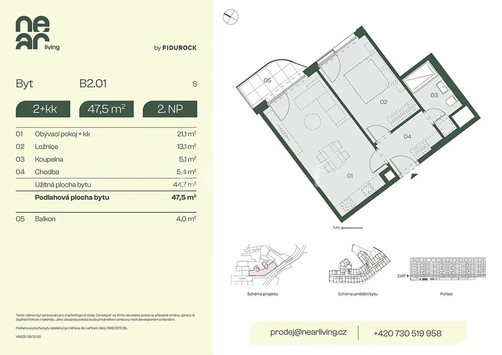 Nabízíme k prodeji byt 2+kk o podlahové ploše 47,5 m² s balkonem 4 m² v developerském projektu NEAR living v Praze 8, vznikajícím na pomezí Palmovky a Karlína.