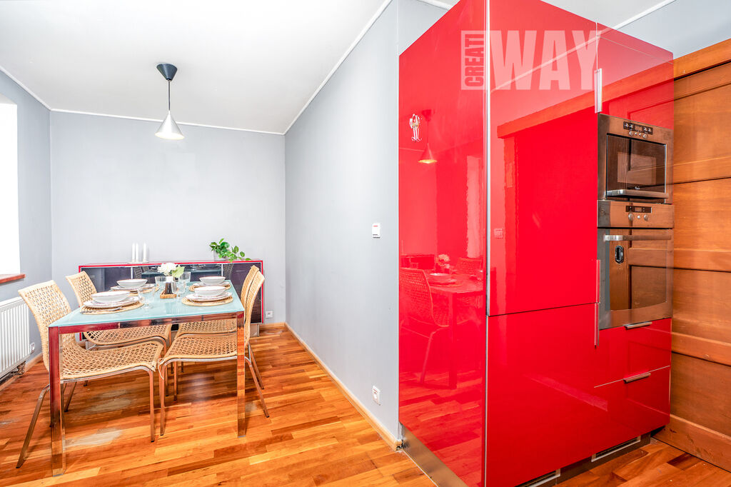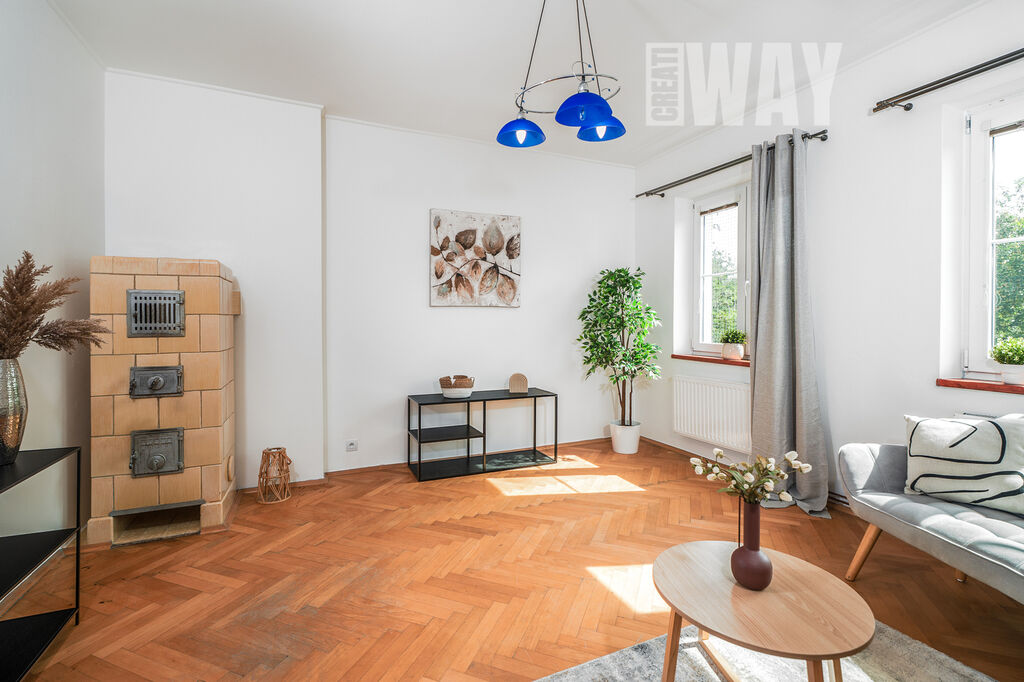 Podlahy tvoří kombinace poctivého dřeva a dlažby - byt tak i díky dalším dřevěným prvkům, jakou jsou dřevěné dveře i zárubně, působí harmonicky a má příjemnou atmosféru. Plastová okna zase přinášejí praktičnost a méně starostí do budoucna.