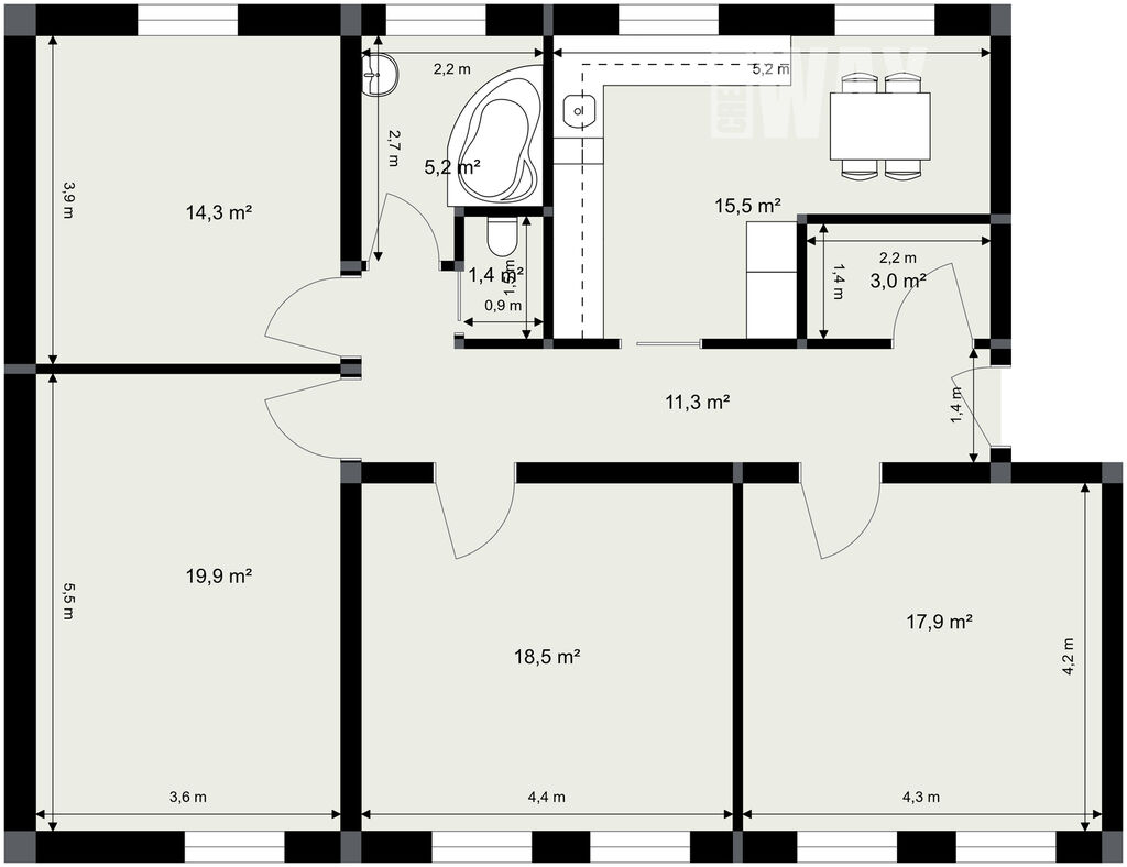Byt samotný nabízí čtyři samostatné pokoje - tři orientované k jihu a jeden, společně s kuchyní, k severu. Všechny pokoje jsou dostatečně velké, abyste se v nich cítili dobře.