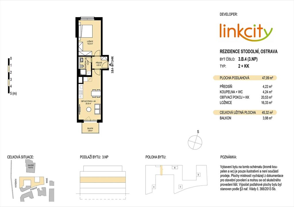 - dispozice 2+kk s 49,67 m2 podlahové plochy