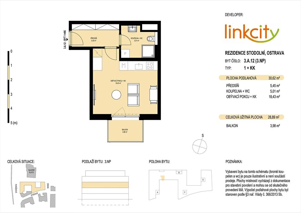- dispozice 1+kk s 30,62 m2 podlahové plochy
