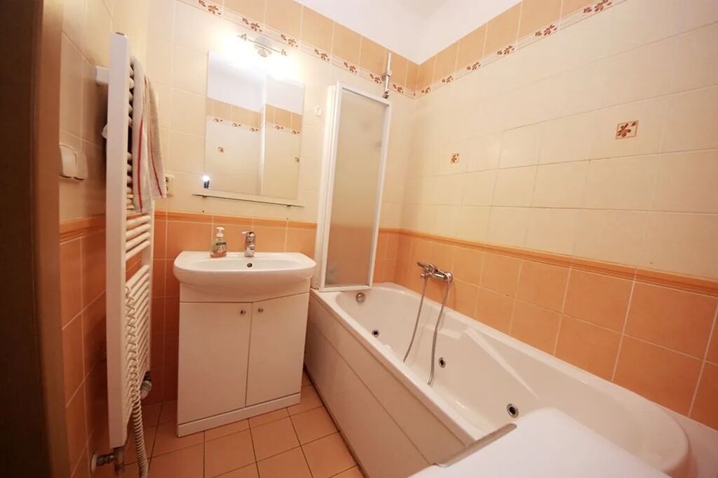 Absolutní klid, krásný výhled a výborná dostupnost do Prahy (14 min. busem na |M| Dejvická). Na podlahách dlažba a plovoucí laminátové. Koupelna s vanou a pračkou, WC s umyvadlem oddělené. Vytápění a ohřev vody vlastním plynovým kotlem Protherm. Kuchyňská linka s troubou, sklokeramickou deskou, digestoří, lednicí a myčkou. Komora v bytě.
