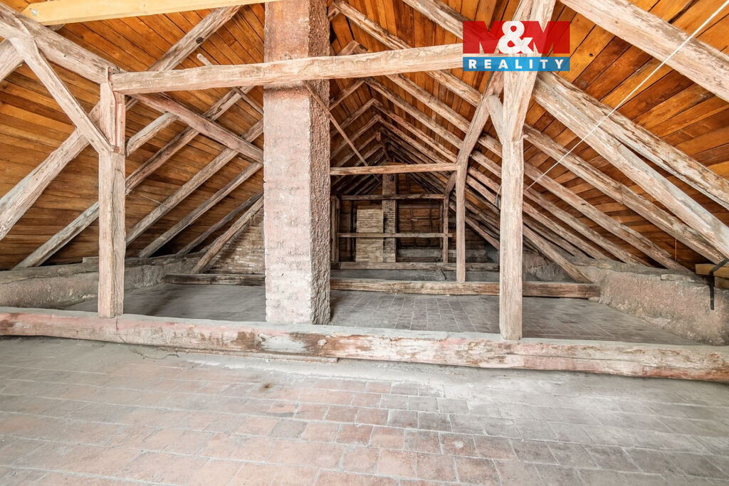 Na půdu jsou již přivedeny všechny inženýrské sítě – elektřina, voda, plyn i kanalizace, což výrazně zjednodušuje budoucí rekonstrukci a přestavbu. Krov je v dobrém technickém stavu, střecha je plechová a prostory jsou přístupné z centrálního schodiště domu.